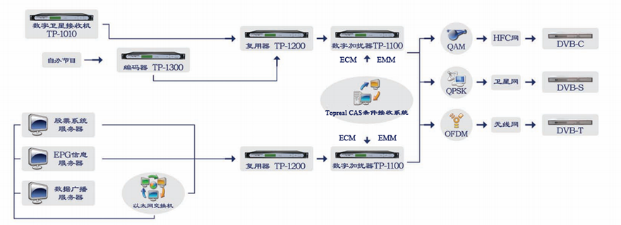 2. 应用广泛------可用于标清到超高清的数字电视运营,支持DVB-S/S2、DVB-C、DTMB等多种业务的直播流安全保护。